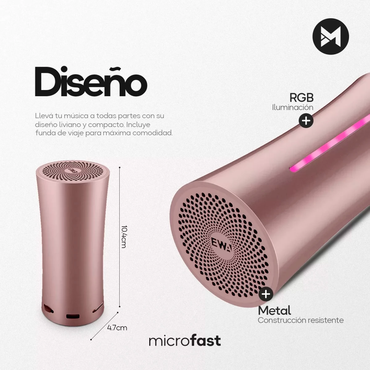 ¡Sonido potente en tamaño de bolsillo! El EWA A115 es la combinación ideal entre potencia, practicidad y resistencia. QUE NO FALTE LA MÚSICA El parlante cuenta con capacidad de batería de 6000mAh que te dará hasta 105 horas (con volumen al 50%). Despreocúpate de la carga de la batería y preocúpate por elegir que música poner. POTENCIA Y PESO 5W de potencia de salido de audio claro y de alta resolución que te brindarán sonido de calidad excepcional y sin distorsión. COMPAÑERO DE VIAJE Incluye funda de viaje para llevarlo para donde quieras sin ocupar espacio de tu mochila o bolso. Cuenta con certificación de IPX6 que lo hacen resistente a salpicaduras. TUMBA LA CASA Su funcionalidad TWS te permitirá sincronizar dos parlantes (del mismo modelo) entre sí, obteniendo dos focos de salida de sonido. A su vez, su presencia de graves profundos lo convertirán en el alma de la fiesta. EN LOS DETALLES Accedé a control absoluto de tu música desde 1 solo botón: ·Control de encendido y apagado. ·Pausar y reanudar. ·Ajustar volumen. ·Cambiar canciones Además presenta una experiencia sensorial más completa con efectos visuales LED al ritmo de tú música. FICHA TÉCNICA Versión Bluetooth: 5.0 Distancia Bluetooth: Hasta 15 metros (sin obstáculos). Formatos soportados: MP3, WAV, WMA, FLAC, APE. Capacidad de batería: 6000mAh. Tiempo de carga: 4 horas. Tiempo de reproducción: Hasta 105 horas al 50% del volumen. Nivel impermeable: IPX6. Parámetros de carga: 5V. Respuesta de frecuencia: 80Hz - 20KHz. Relación señal-ruido: >= 90dB. Tasa de distorsión: <0.1%. Material: Cubierta metálica con malla protectora. Dimensiones: 4.7 x 4.7 x 10.4 cm. ¿QUÉ INCLUYE? Altavoz Bluetooth EWA-A115 x 1 Cable USB x 1 Bolsa de transporte x 1 Manual del usuario x 1